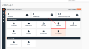 JetBackup veritabanını geri yüklemeye başlar ve birkaç saniye ile birkaç dakika arasında tamamlanır (veritabanının boyutuna bağlı).