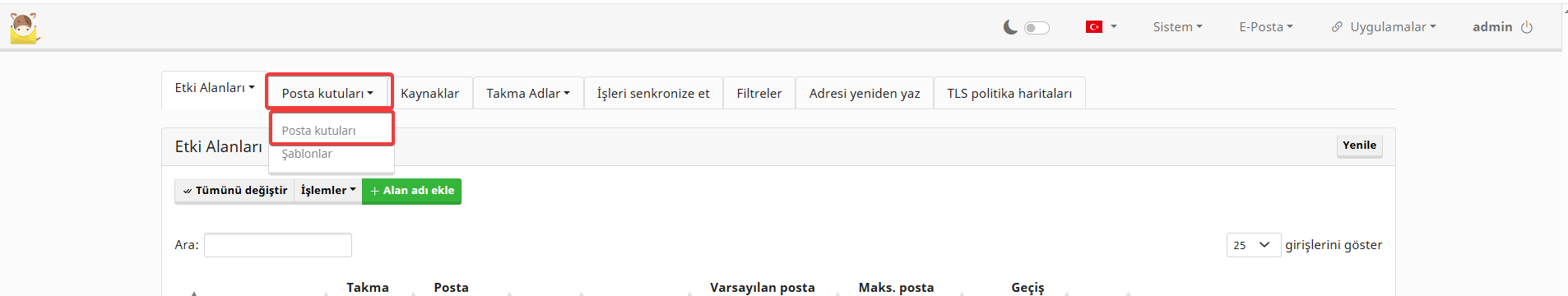 Üstte bulunan seçeneklerden “Posta kutuları” kısmına tıklıyoruz.